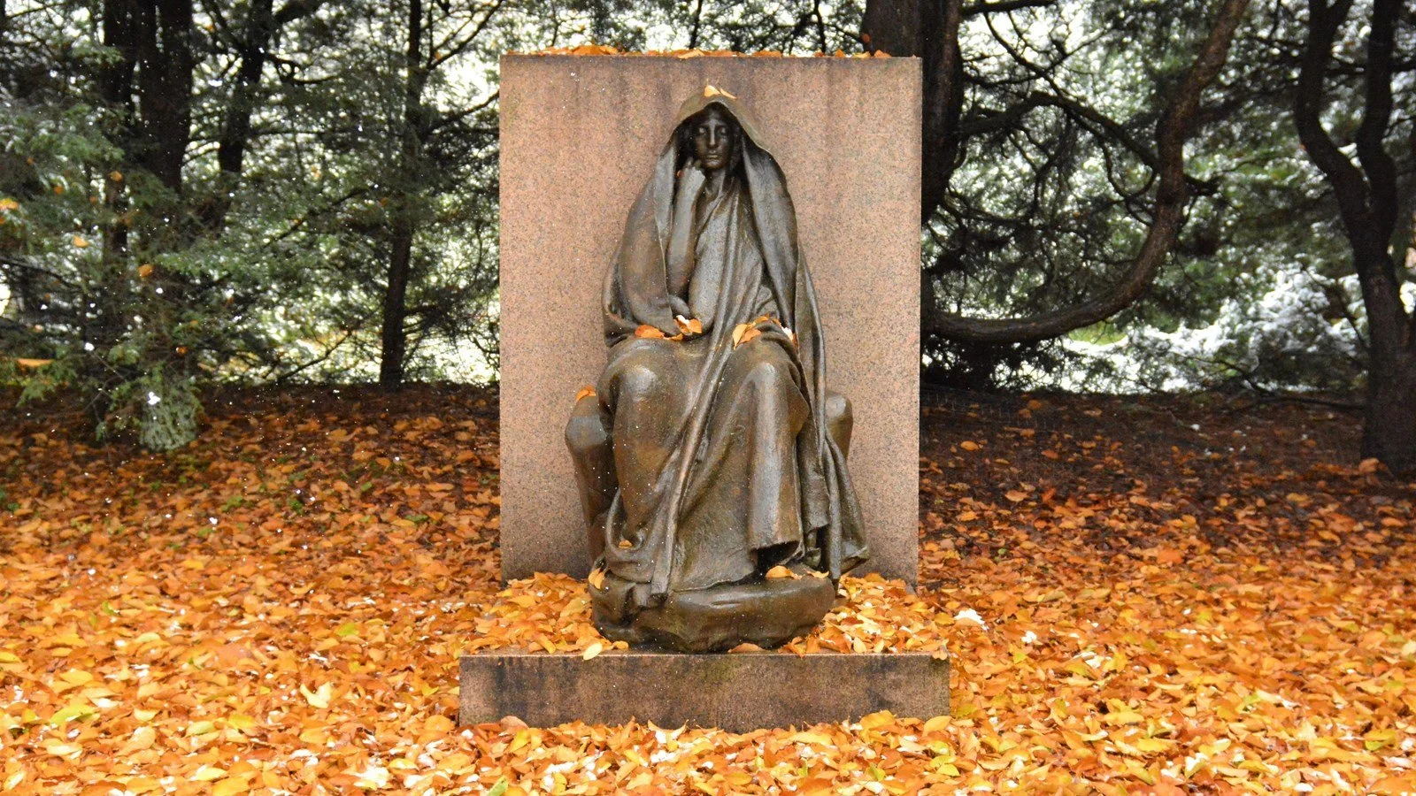 Clover’s unmarked grave is decorated by a now-famous statue by Augustus Saint Gaudens, entitled The Mystery of the Hereafter and The Peace of God that Passeth Understanding, but commonly referred to as Grief.