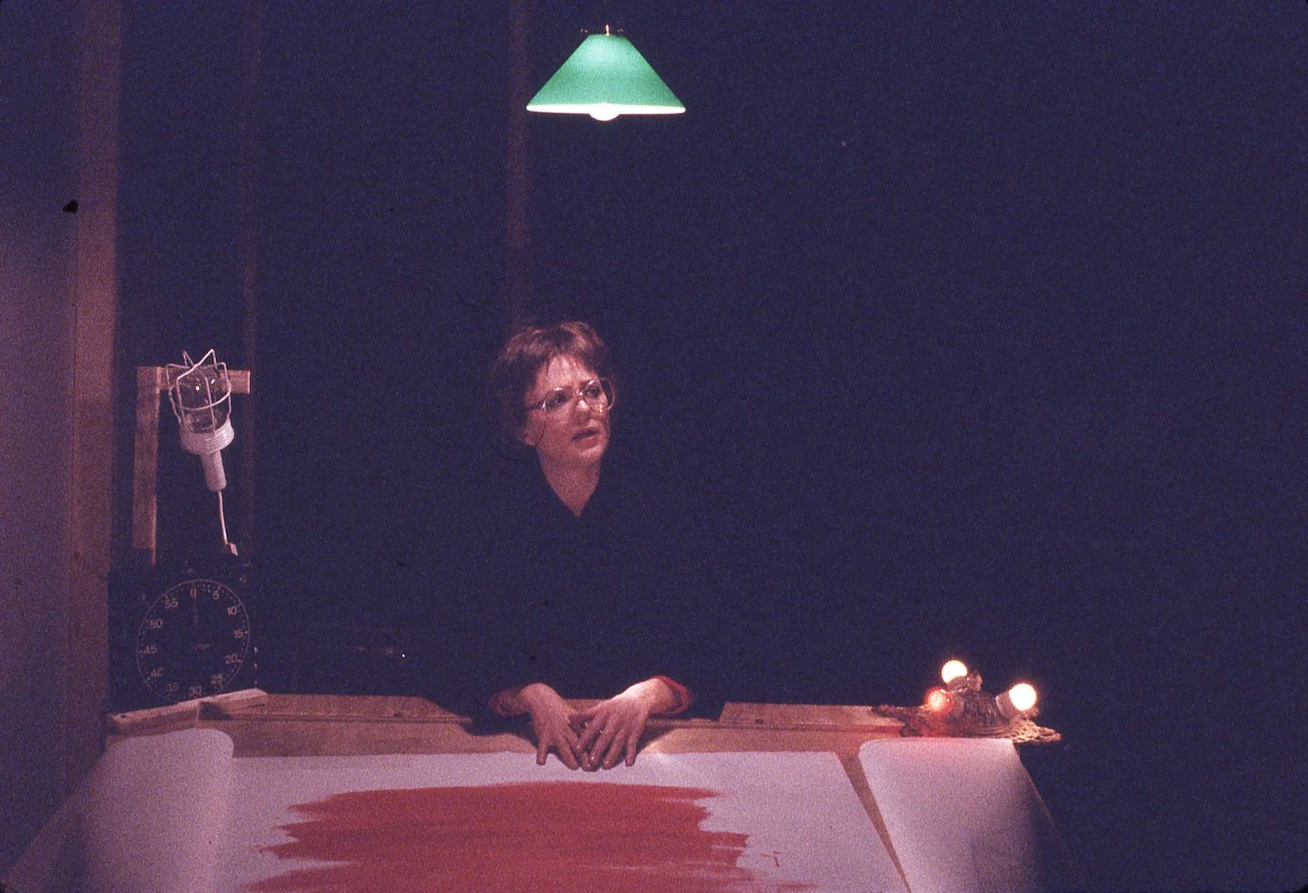 “The characters in my work are very fluid. And I use 8mm films in a rather strange way, not supporting the plot, but veering off to becoming another value in terms of what you see; they expand the material and take it outside, through a cornfield, toward a sunset, toward where Mary is heading. But not to the actual hanging; I don’t do the usual screaming and sweating; instead Marry Surratt talks about her favorite colors, the little details, the insignificant things that somehow became monumental, that evoke the terror. Doing it that way shocks an audience.”